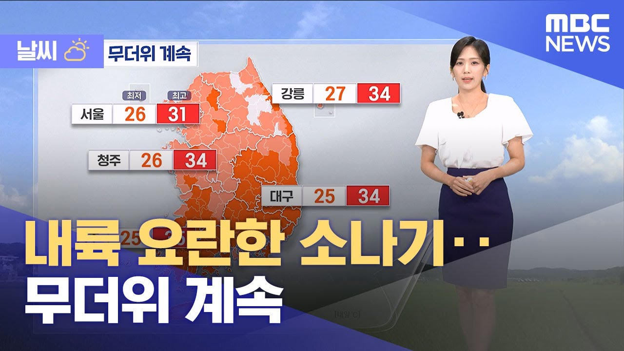 [날씨] 내륙 요란한 소나기‥무더위 계속 (2025.08.19/5시뉴스와경제/MBC)