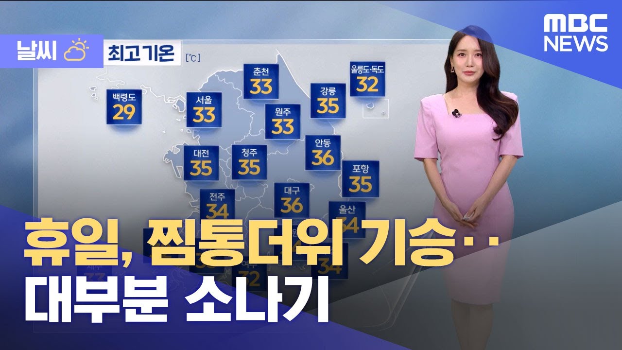 [날씨] 휴일, 찜통더위 기승‥대부분 소나기 (2025.08.24/12MBC뉴스)
