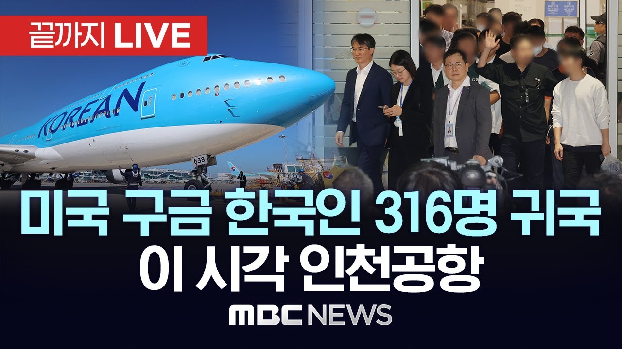 ‘미국 구금 한국인 316명’ 한국 도착..이 시각 인천공항 – [끝까지LIVE] MBC 중계방송 2025년 09월 12일