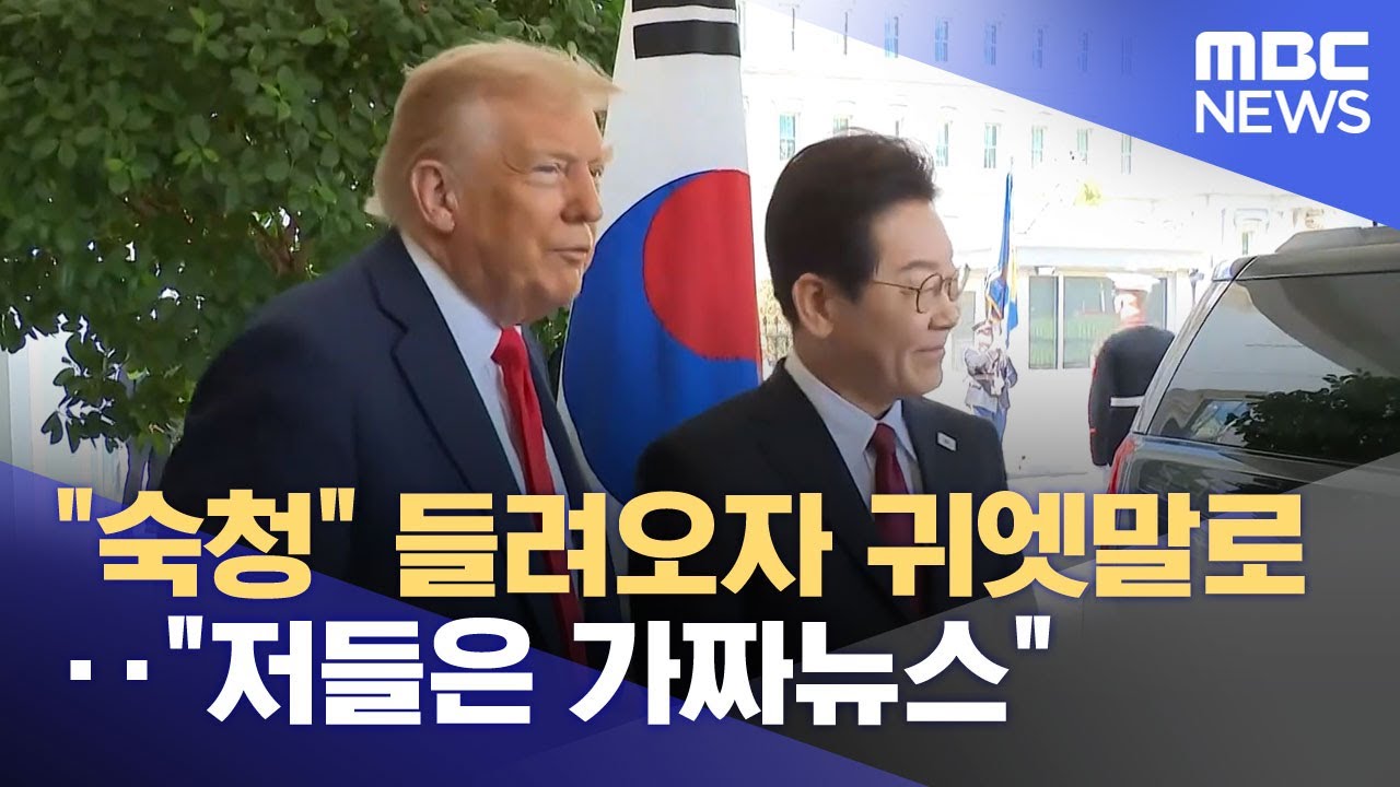 그런데, 트럼프 대통령이 이재명 대통령을 마중나온 자리에서 누군가 이에 대한 질문을 했는데, 이때 트럼프 대통령이 이 대통령의 귀에 대고 “가짜뉴스”라고 속삭이는 장면이 포착됐습니다.
