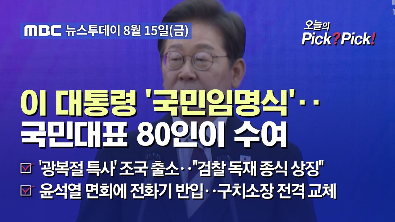 #MBCN [투데이 Pick? Pick!] 이 대통령 ‘국민임명식’‥국민대표 80인이 수여 (2025.08.15)
