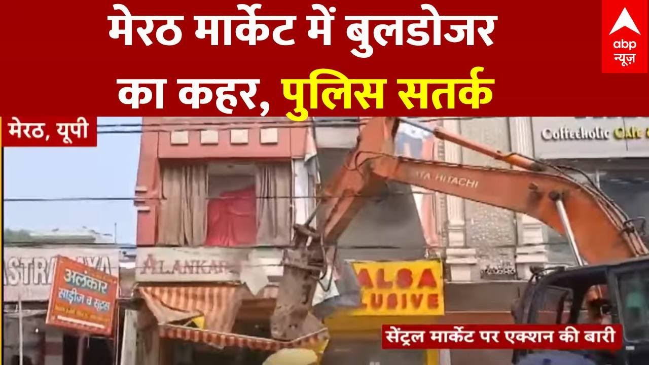 Meerut News: मेरठ के सेंट्रल मार्केट में बुलडोजर चलने से मचा बवाल, अवैध निर्माण ध्वस्त #ABP