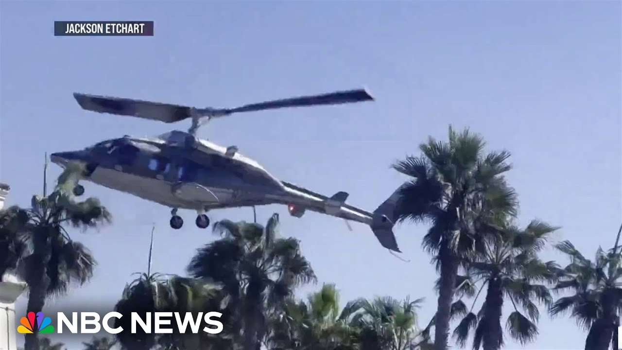 Five people were injured after a helicopter spun out of control and crashed onto a busy tourist beach in southern California. NBC News’ Morgan Chesky reports.