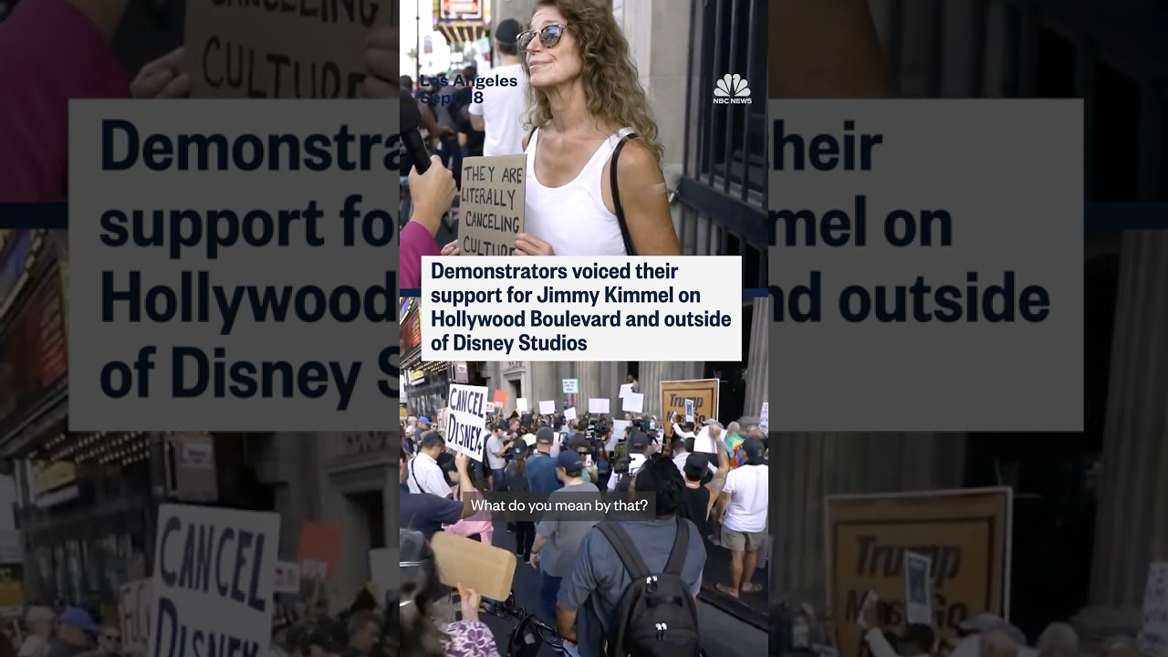 Demonstrators voice their support for Jimmy Kimmel on Hollywood Blvd. and outside Disney Studios