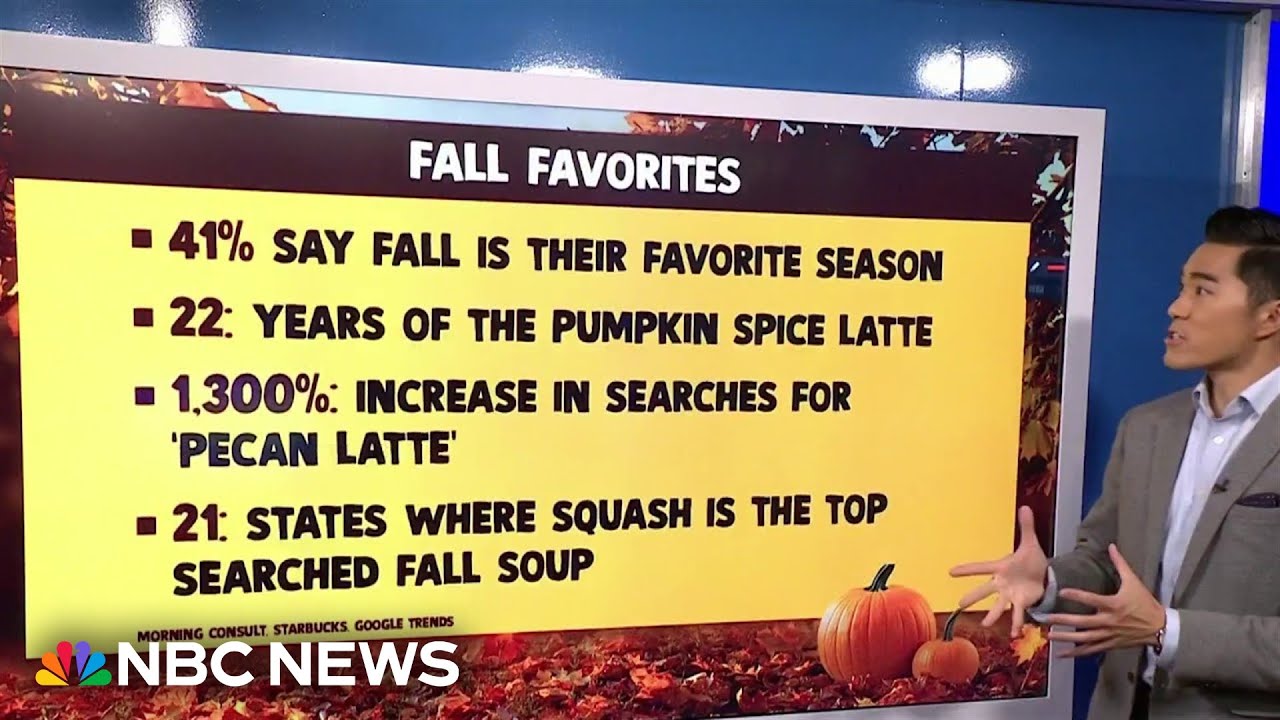 The fall equinox officially marks the beginning of the new season, with days getting shorter and consumers reaching for spiced drinks. NBC News’ Brian Cheung breaks down some of the numbers associated with fall, including how many billions of pounds of apples are grown in the U.S. every year.