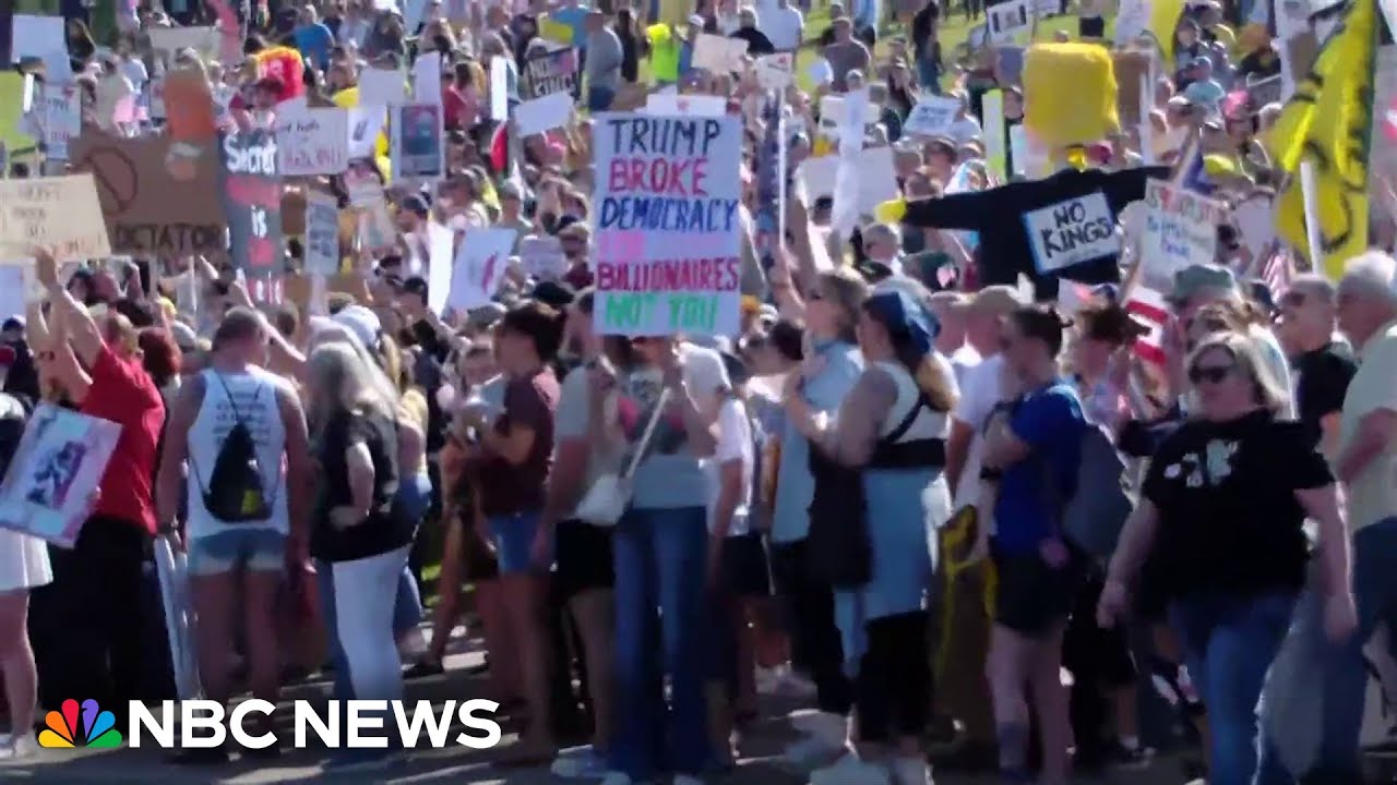 Hundreds of thousands of people in crowds across the country took to the streets on Saturday to protest the Trump administration as part of the “No Kings” movement. The Trump administration warned that protests could be unsafe, though most demonstrations appeared to be peaceful. NBC News’ Adrienne Broaddus reports from Chicago.