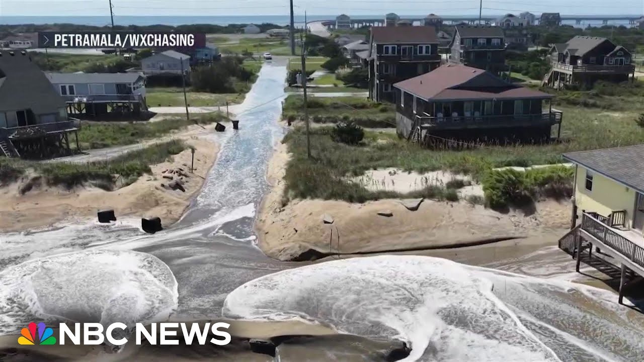 Hurricane Erin could dump up to two inches of rain in parts of North Carolina this week as the category 2 storm churns over the Atlantic. On Hatteras Island, some tourists have relocated after a mandatory evacuation order and some residents are deciding to stay. NBC News’ Aaron Gilchrist reports.