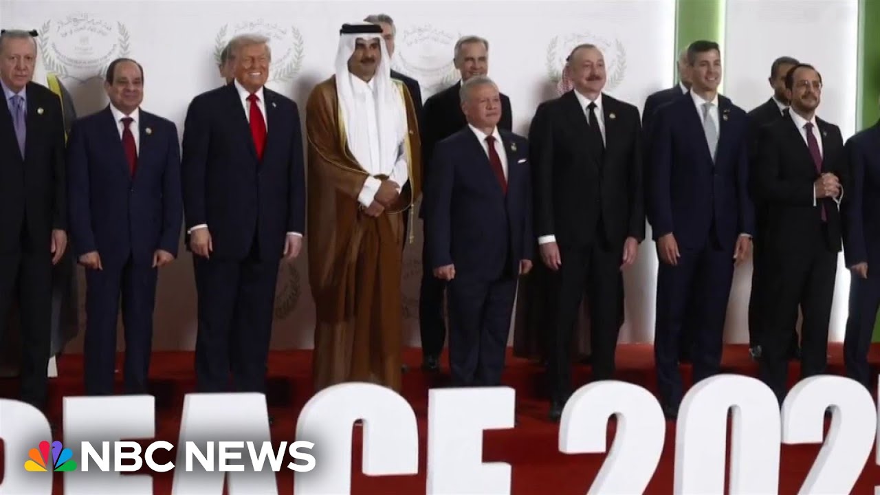 President Trump’s global influence was evident at the Middle East peace summit where he was joined by other world leaders. Italian Prime Minister Giorgia Meloni told NBC News she is ‘absolutely optimistic’ about the peace plan. NBC News’ Keir Simmons reports on international leaders’ reactions and ongoing security efforts to maintain regional peace.