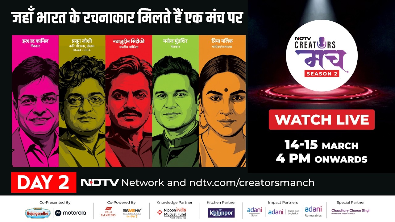 NDTV’s Creators’ Manch Season 2 returns as a dynamic cultural platform where literature, cinema, and bold ideas come together in powerful conversation. Bringing celebrated Hindi writers, film personalities, intellectuals, and emerging young voices onto one stage, this season explores themes ranging from feminism and marginalised identities to the future of books, publishing, and creativity in the digital age. More than a series of discussions, Creators’ Manch serves as a bridge between generations — connecting experience with new energy, and tradition with innovation. It is a space where ideas are celebrated, creativity finds its voice, and the new generation takes its rightful place in the cultural dialogue. For lovers of literature and art — and for anyone seeking to understand the shifting sensibilities of society and the new directions of the creative world — Creators’ Manch Season 2 promises conversations that truly matter. Watch the magic of poetry and storytelling unfold on 14th – 15th March.