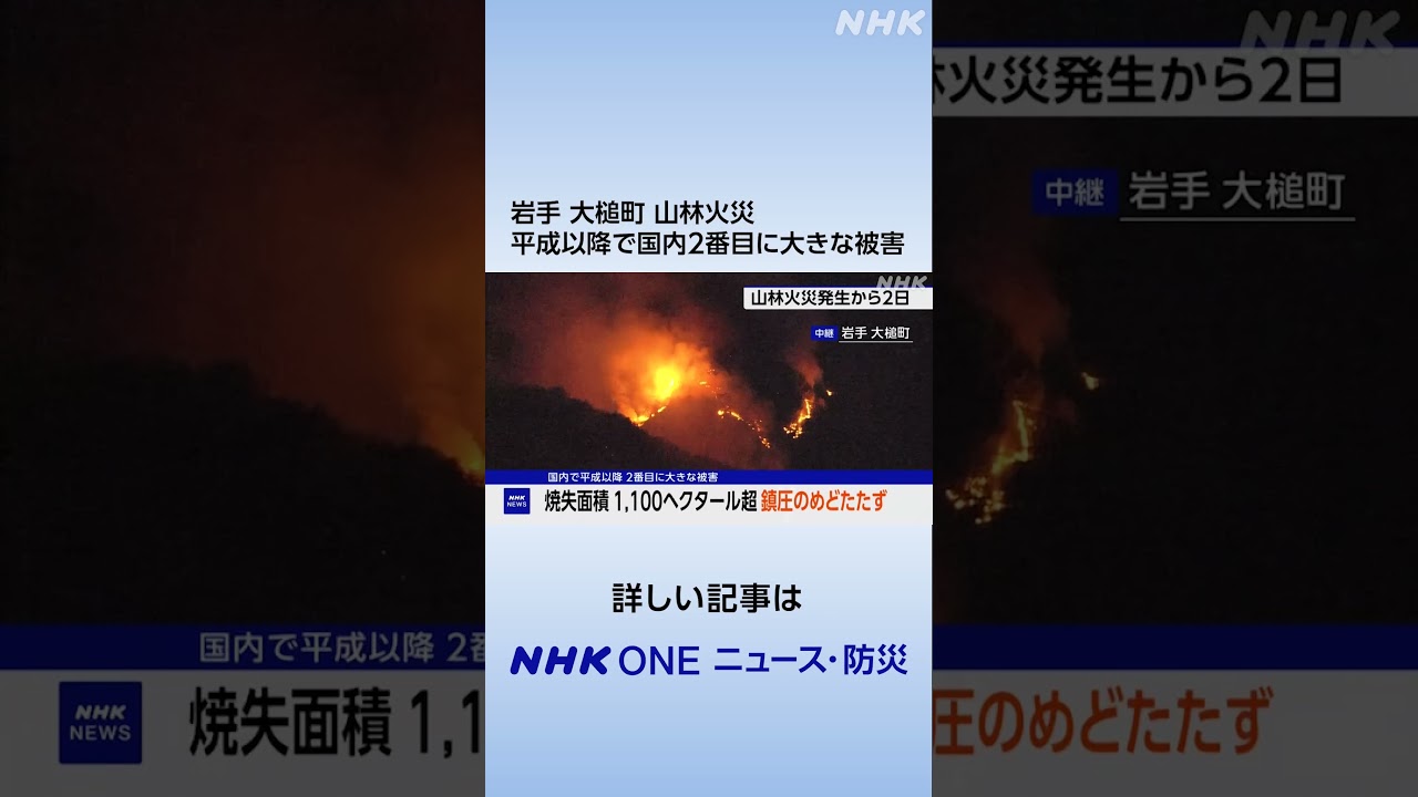 大槌町山林火災 延焼続く 平成以降で国内2番目に大きな被害 | NHK | #shorts