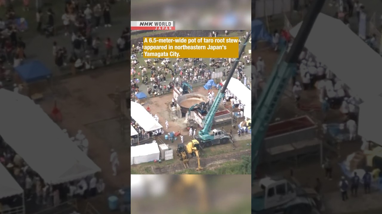 Taro root stew is an autumn delicacy in northeastern Japan’s Yamagata City. A local festival cooked up the dish using over three tons of taro, around 3,500 green onions and over a ton of beef in a 6.5-meter-wide pot, big enough for 40,000 servings.