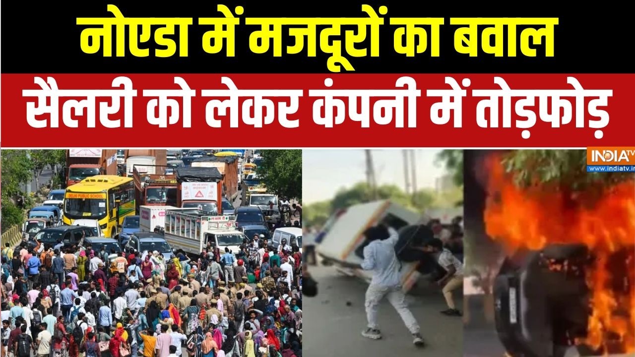 Noida Labour Protest: नोएडा Phase 2 में मजदूरों का बवाल, सैलरी को लेकर कंपनी में तोड़फोड़ | Breaking #IndiaTV