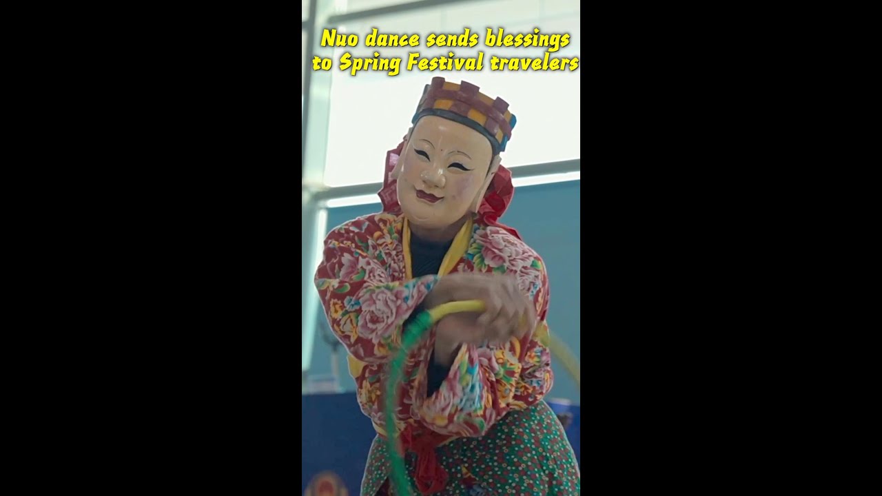 Nuo dance sends blessings to Spring Festival travelers