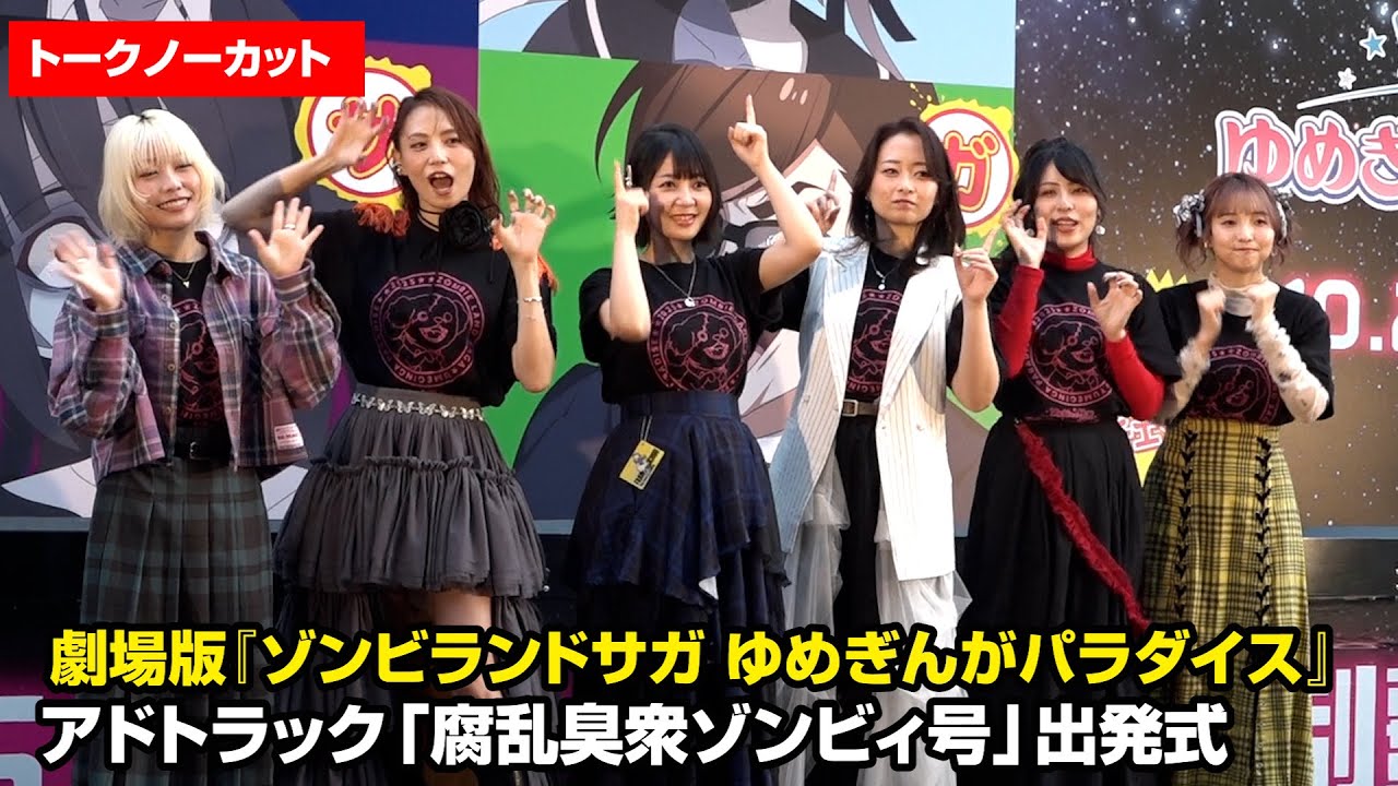 声優の本渡楓 、田野アサミ、種田梨沙、河瀬茉希、衣川里佳、田中美海が10日、劇場版『ゾンビランドサガ ゆめぎんがパラダイス』アドトラック「腐乱臭衆ゾンビィ号」出発式に出席した。