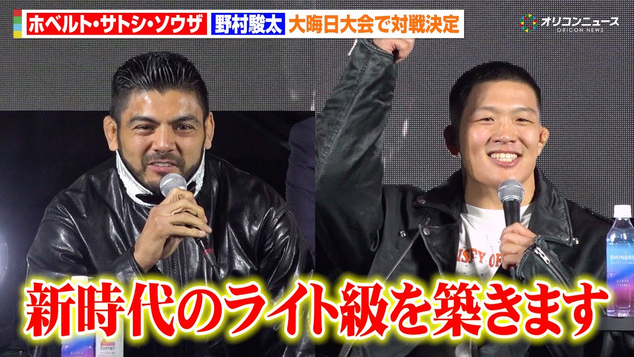12月31日に行われれるRIZIN10周年の集大成となる大会『RIZIN 師走の超強者祭り』(さいたまスーパーアリーナ)の対戦カード発表会見が、5日に東京・六本木ヒルズアリーナで開催。ライト級タイトルマッチのホベルト・サトシ・ソウザvs.野村駿太が決定した。