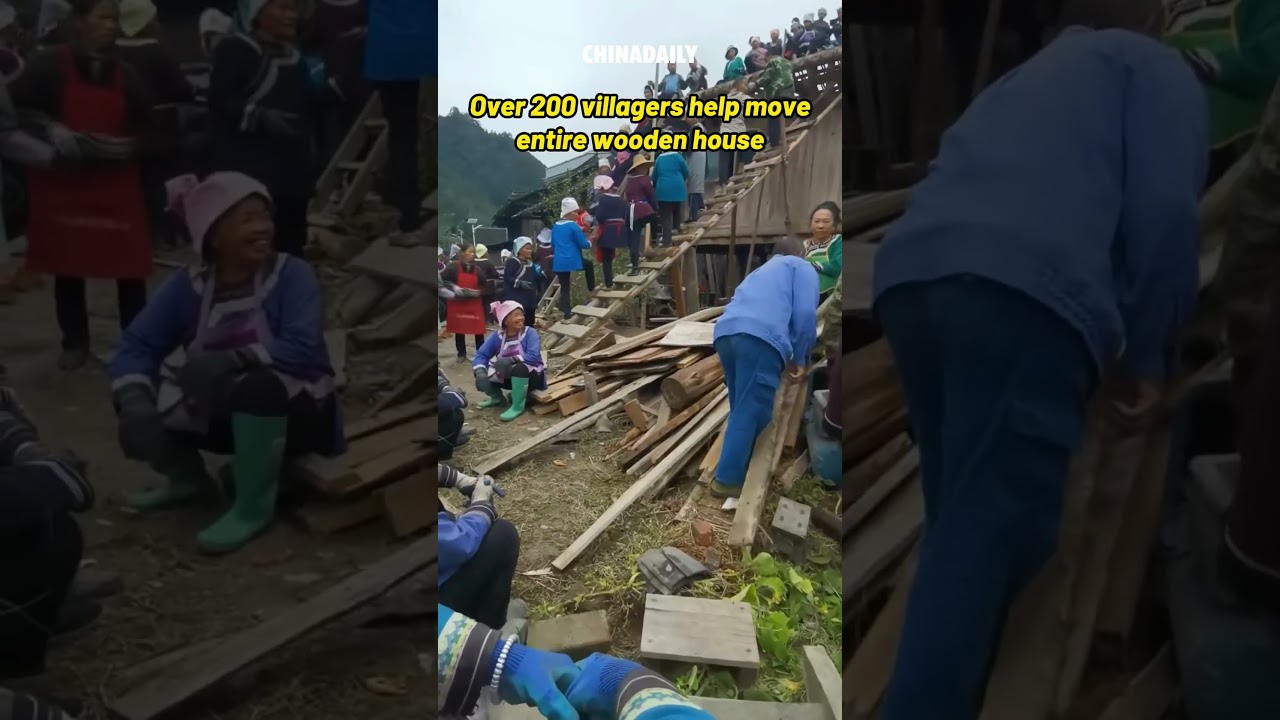 Over 200 villagers help move entire wooden house in SW China’s Guizhou #ChinaDaily #中国日报