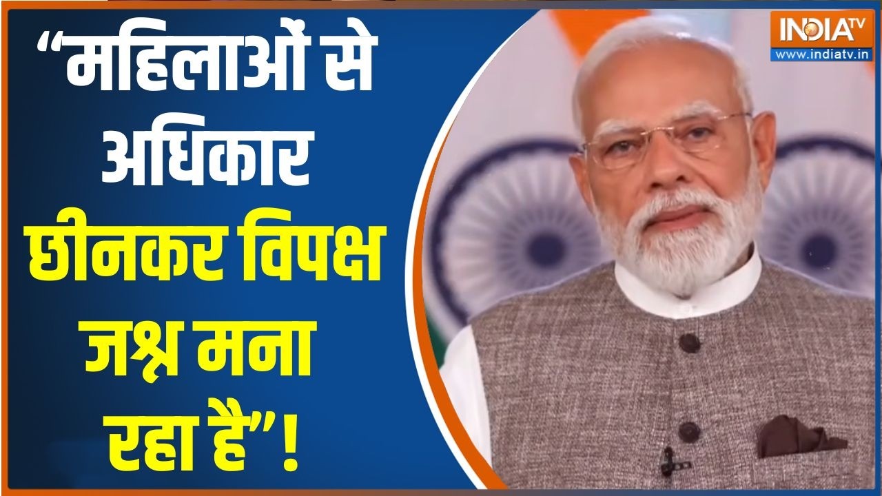 राष्ट्र को संबोधित करते हुए प्रधानमंत्री नरेंद्र मोदी ने विपक्ष पर तीखा हमला बोला। उन्होंने कहा कि महिलाओं से उनके अधिकार छीनकर विपक्ष जश्न मना रहा है। महिला आरक्षण बिल को लेकर देशभर में सियासी घमासान तेज हो गया है और इस मुद्दे पर आरोप-प्रत्यारोप जारी हैं।