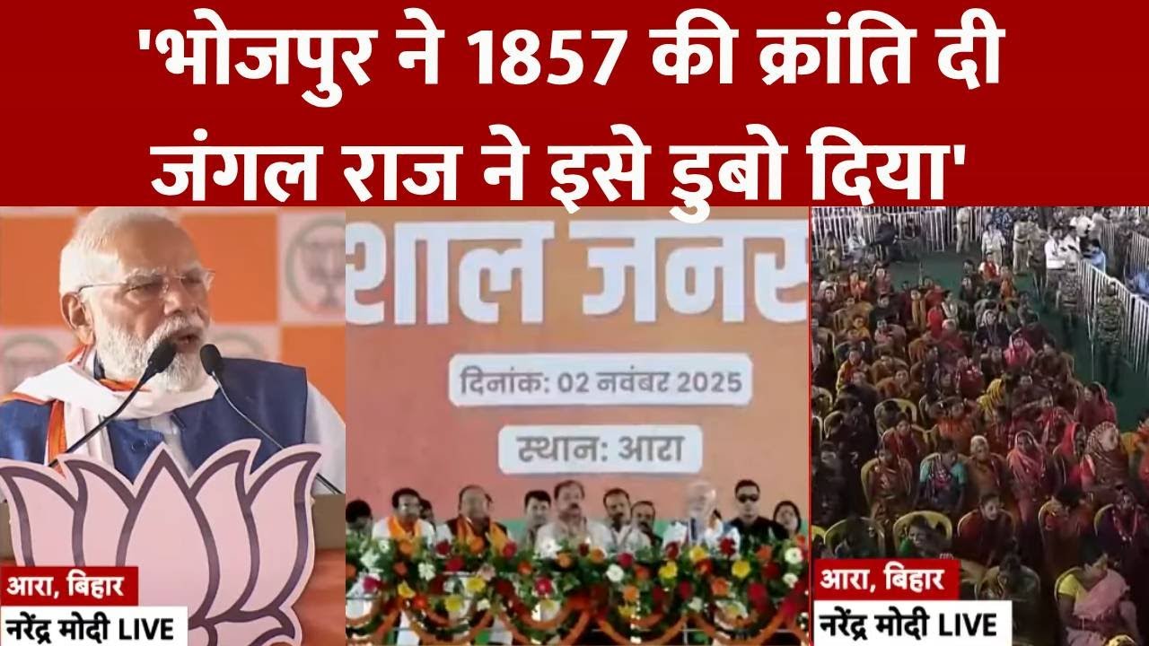 प्रधानमंत्री नरेंद्र मोदी ने आरा की रैली से बिहार को विकास का नया मंत्र दिया। पीएम ने कहा— “विकसित बिहार ही विकसित भारत का आधार है।” उन्होंने युवाओं के रोजगार, महिलाओं के सशक्तिकरण और औद्योगिक विकास का वादा करते हुए जनता से एनडीए को रिकॉर्ड सीटें दिलाने की अपील की।