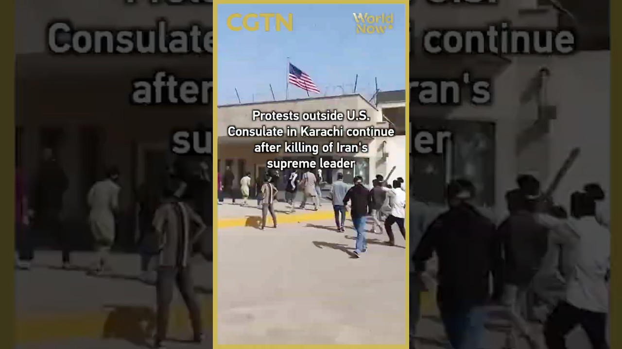 Hundreds of pro-Iran protesters stormed the U.S. Consulate in Pakistan’s Karachi following the U.S.-Israel strikes on Iran, authorities said. A crowd of young people climbed over the main gate and gained access to the driveway of the consular building, smashing some windows. At least 10 people were killed during the protest. #worldnow