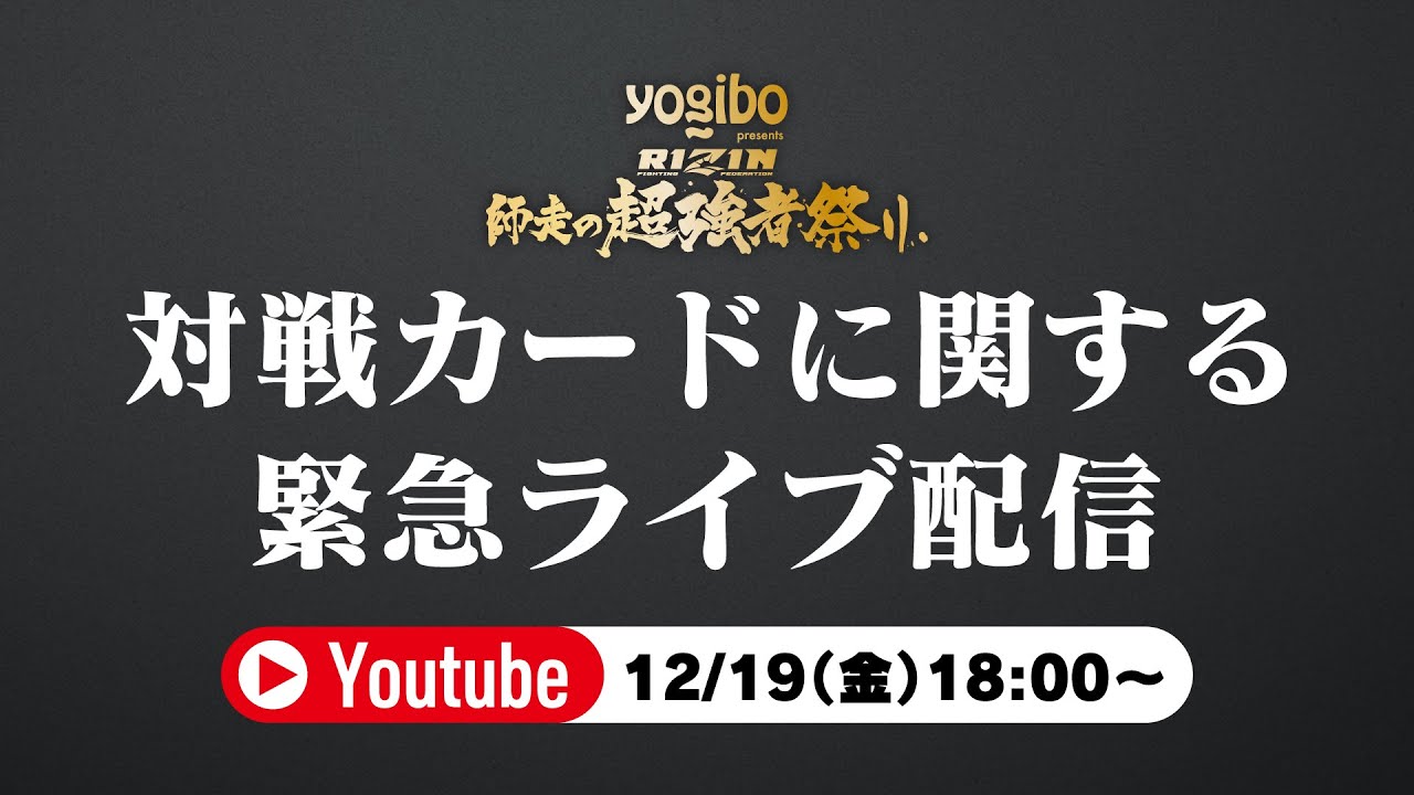 #RIZEN Yogibo presents RIZIN師走の超強者祭り 対戦カードに関する緊急ライブ配信