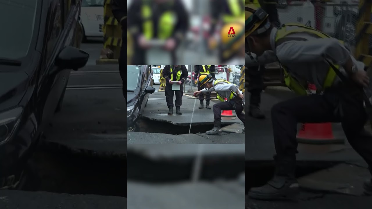 Road caves in after quake in Japan, train services halted #CNA
