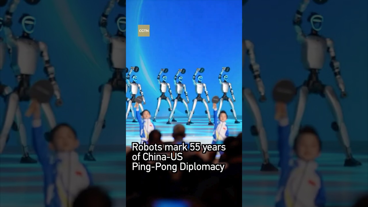 Robots took center stage at a commemorative event held at Beijing’s Capital Indoor Stadium, marking the 55th anniversary of China-US Ping-Pong Diplomacy, when a US table tennis team delegation made a historic trip to China in April 1971, becoming the first delegation of Americans to visit China in decades. In a dynamic ping-pong performance, children and robots shared the spotlight at the commemoration, blending lively dance with precise table tennis moves. The seamless fusion of graceful choreography and competitive play highlighted both the energy of the sport and the creativity of technological innovation, bringing the rhythm and evolving spirit of ping-pong vividly to life. #worldnow #china #us #robot