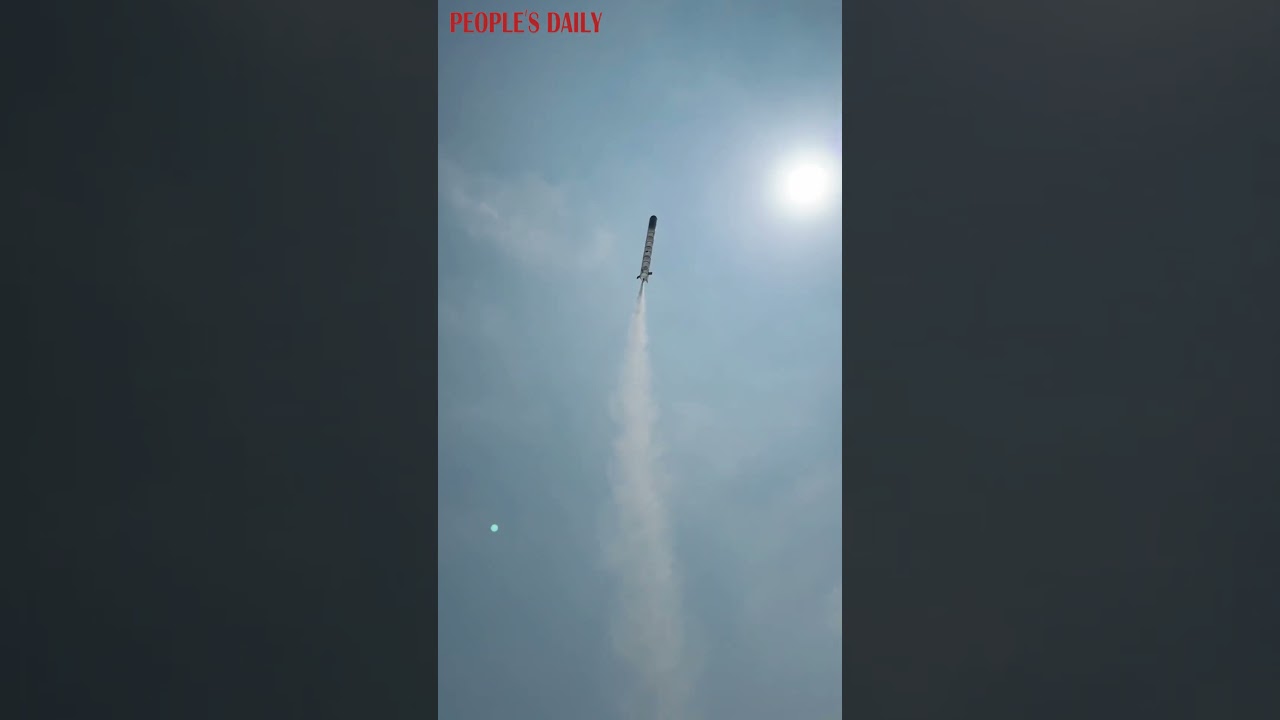 Science teachers in Ji’an launched a 3.8-meter single-stage water rocket made from plastic barrels #PeoplesDailyChina #人民日报
