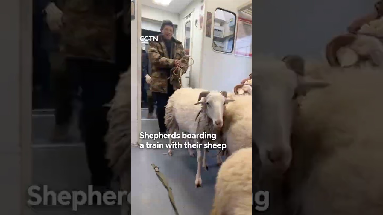 Shepherds boarding a train with their sheep #CGTN