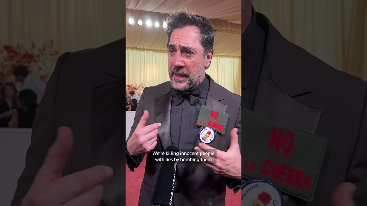 Spanish actor Javier Bardem wore a pin that said “No Guerra,” which translates to “no to war.”