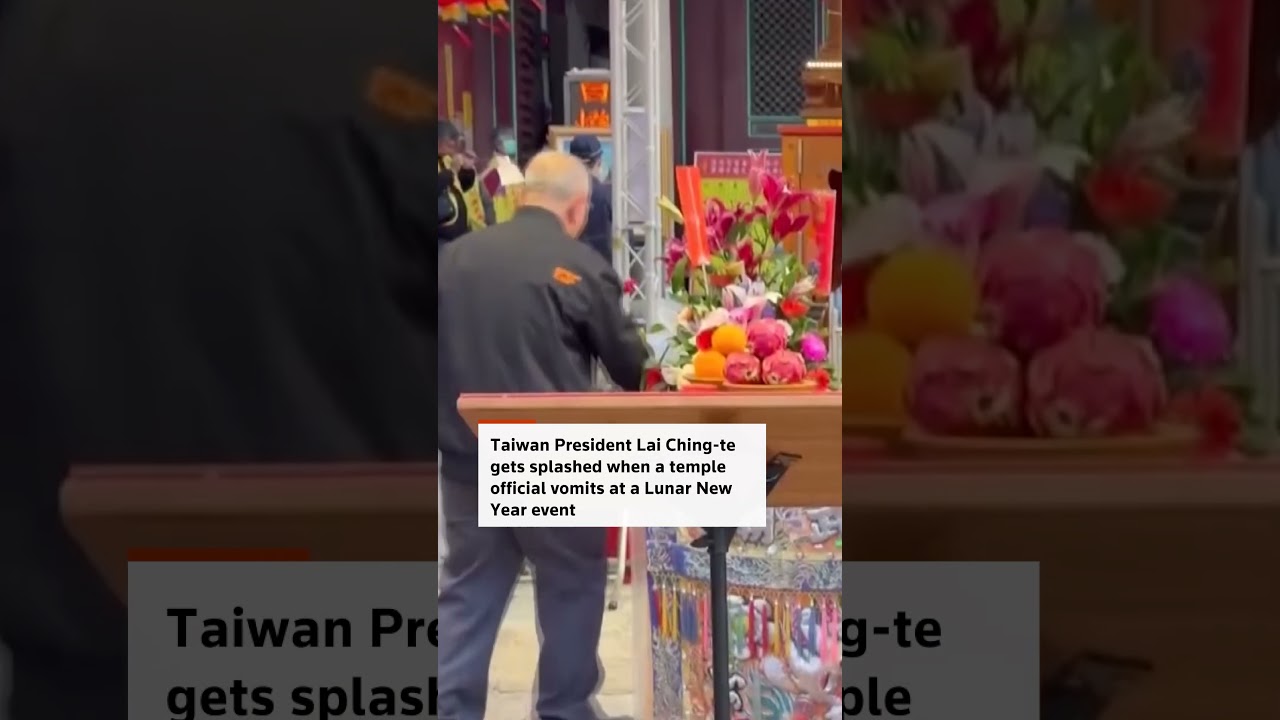 A Lunar New Year event in Taiwan was briefly halted when a temple official standing beside President Lai Ching-te suddenly threw up, splashing Lai’s clothing.