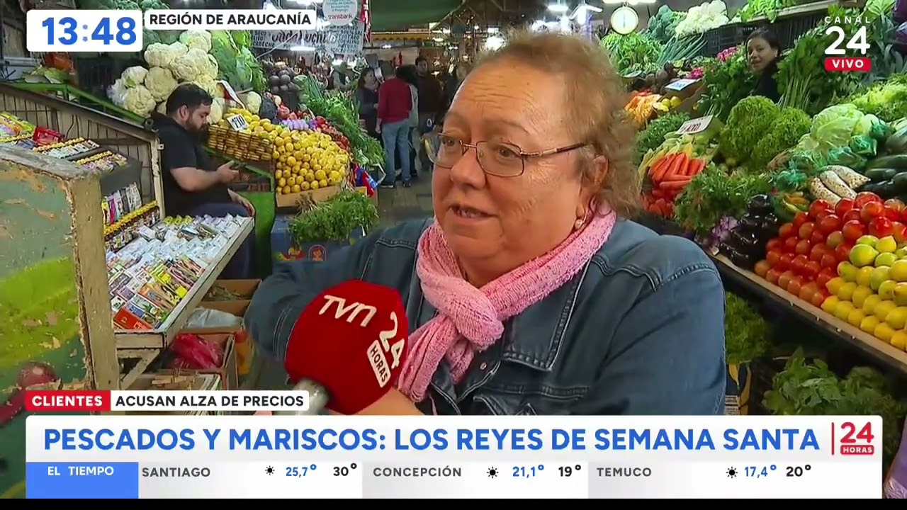 En medio de las compras de Semana Santa, los clientes de la feria Pinto de Temuco acusan un alza en el precio de los alimentos, específicamente de las verduras, consumo que aumenta durante este fin de semana largo. Sin embargo, otros productos como los pescados y mariscos habrían mantenido su precio con respecto al año pasado.