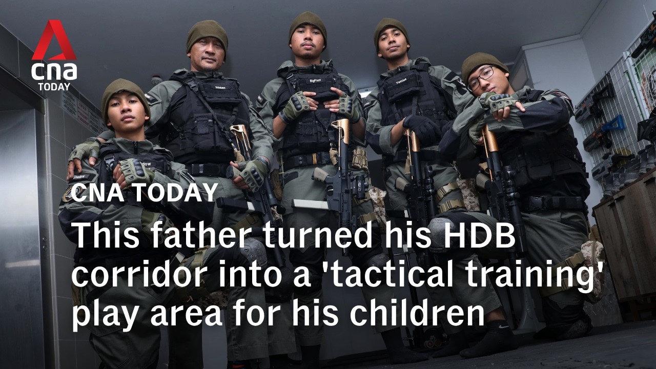 An HDB corridor in Singapore has been turned into a ‘training zone’ by Mr Munir Rohani. The 59-year-old, with help from his children, set up mats, masks, vests and toy weapons to create a combat-style play space just outside their home, with the aim of bringing the family closer together.