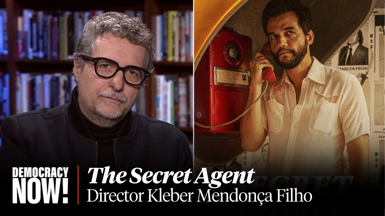 The Secret Agent is one of the most celebrated international films of the year. It has been nominated for four Oscars, including Best Picture and Best Actor. The film stars Wagner Moura and is set in Brazil in 1977, during the final years of the military dictatorship. We speak with the film’s director and screenwriter, Kleber Mendonça Filho.