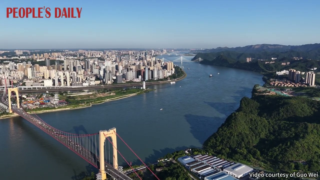 The vibrant cityscape of Yichang in central China’s Hubei Province unfolds as smooth traffic moves across the bridges and ships sail along the broad Yangtze River.