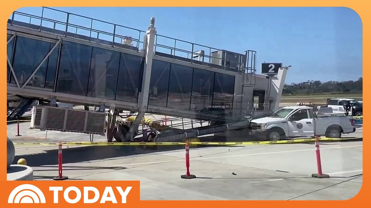 A jet bridge that was undergoing routine maintenance suddenly collapsed at the Santa Barbara Airport on Tuesday. At least two maintenance workers suffered non-life-threatening injuries and were taken to a local hospital. The cause of the collapse is still under investigation.