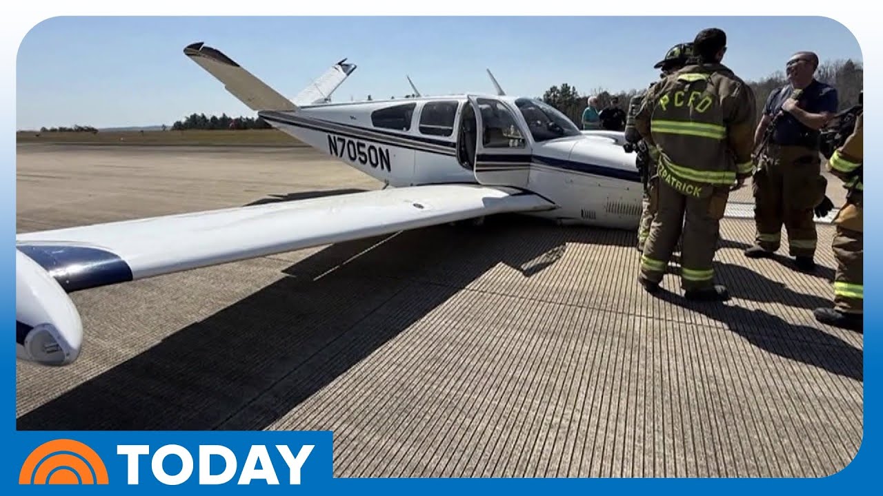 First responders were standing by as a small plane attempted to touch down without its landing gear deployed at an airport northwest of Atlanta on Friday. Video captures the moment the pilot made a safe emergency landing on the plane’s belly despite the landing gear malfunctioning.