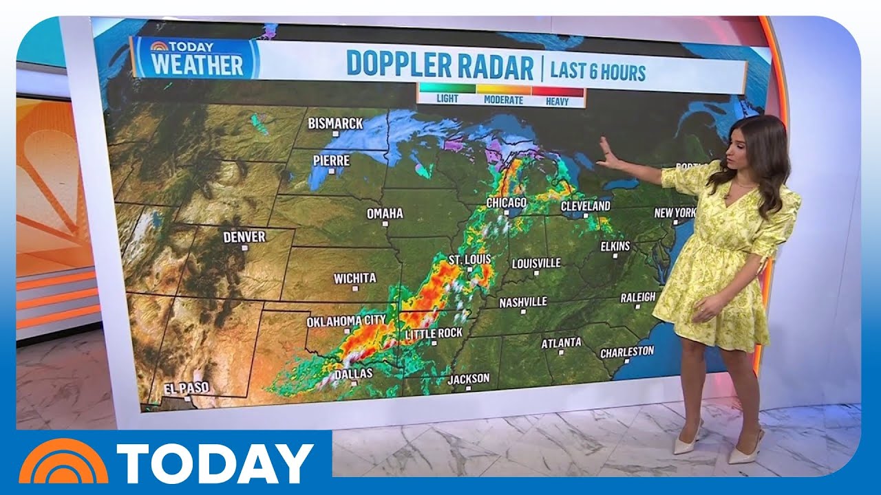 Millions of people are under severe storm risk across the United States. On Friday, parts of the Midwest were hit with intense winds and hail as suspected tornadoes ripped across the region. Saturday TODAY’s Angie Lassman tracks the forecast.