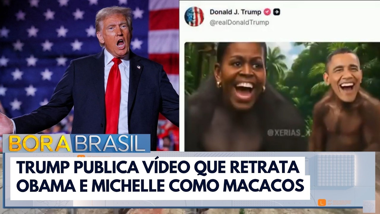 O presidente dos Estados Unidos Donald Trump publicou em sua rede social um vídeo que retrata o ex-presidente Barack Obama e sua esposa Michelle como macacos.