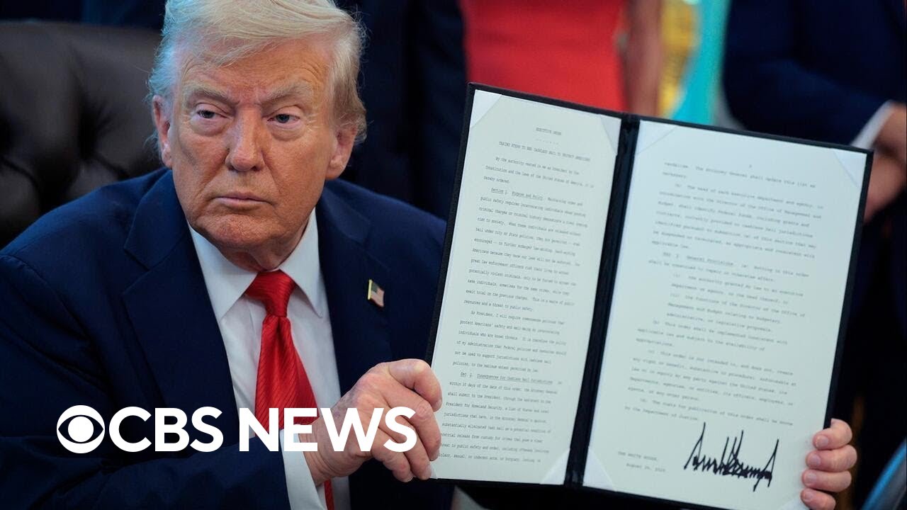 Trump signs executive orders to end cashless bail in D.C., criminalize flag burning #CBSNews