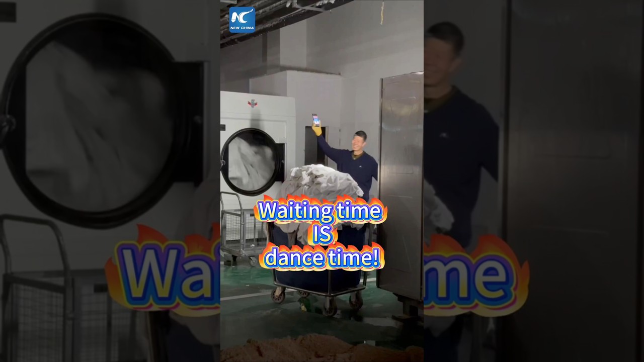 Waiting time = dance time! Who says work can’t have a little joy? In China’s Tongwei County, 50-plus-year-old hotel cleaner Tian Zongyuan turns a routine task into a moment of happiness, dancing freely while waiting for linens to dry. #China #dance