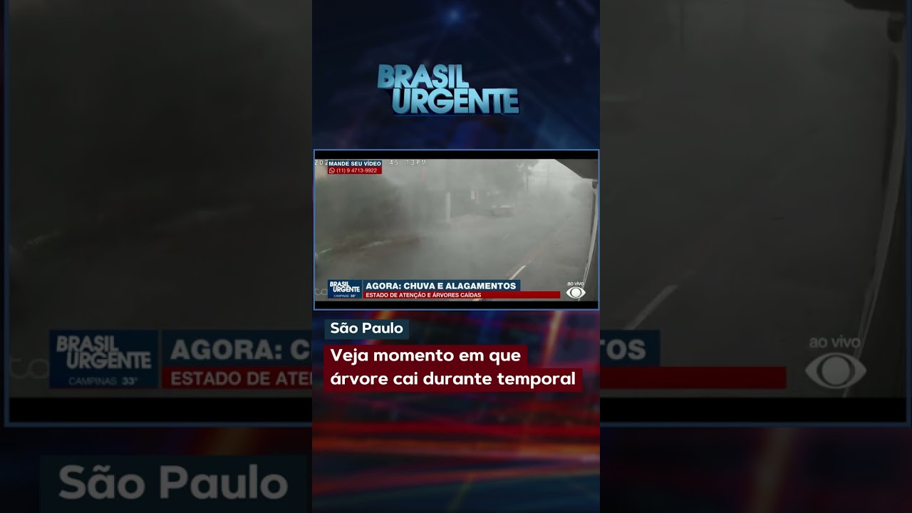 Veja as imagens do momento exato em que uma árvore é derrubada por temporal em São Paulo.