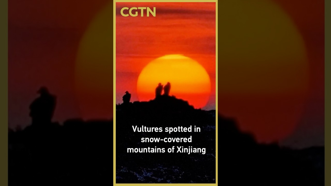 Vultures spotted in snow-covered mountains of Xinjiang #CGTN