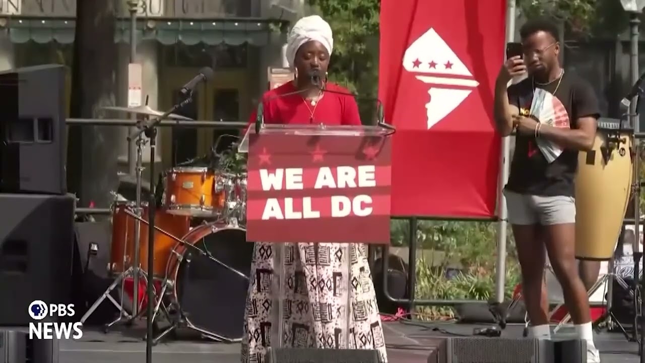 Multiple Washington, D.C. community groups held a protest Saturday against President Donald Trump’s federal takeover of the nation’s capital and other policies. Afeni Evans, an Army veteran and longtime local organizer, spoke at the accompanying rally.