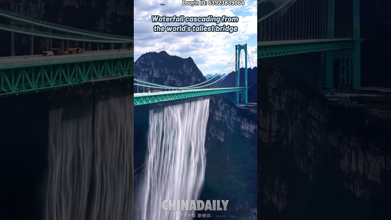 Waterfall cascading from the world’s tallest bridge #ChinaDaily #中国日报
