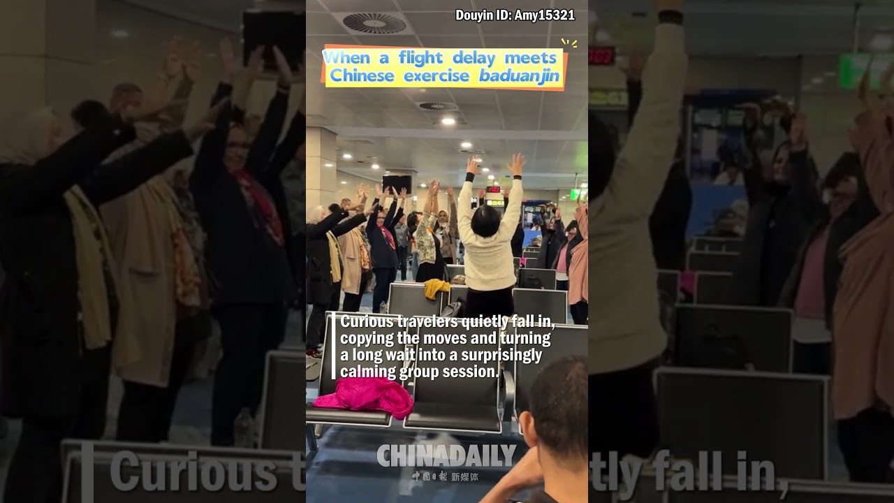 When a flight delay meets Chinese exercise baduanjin #ChinaDaily #中国日报