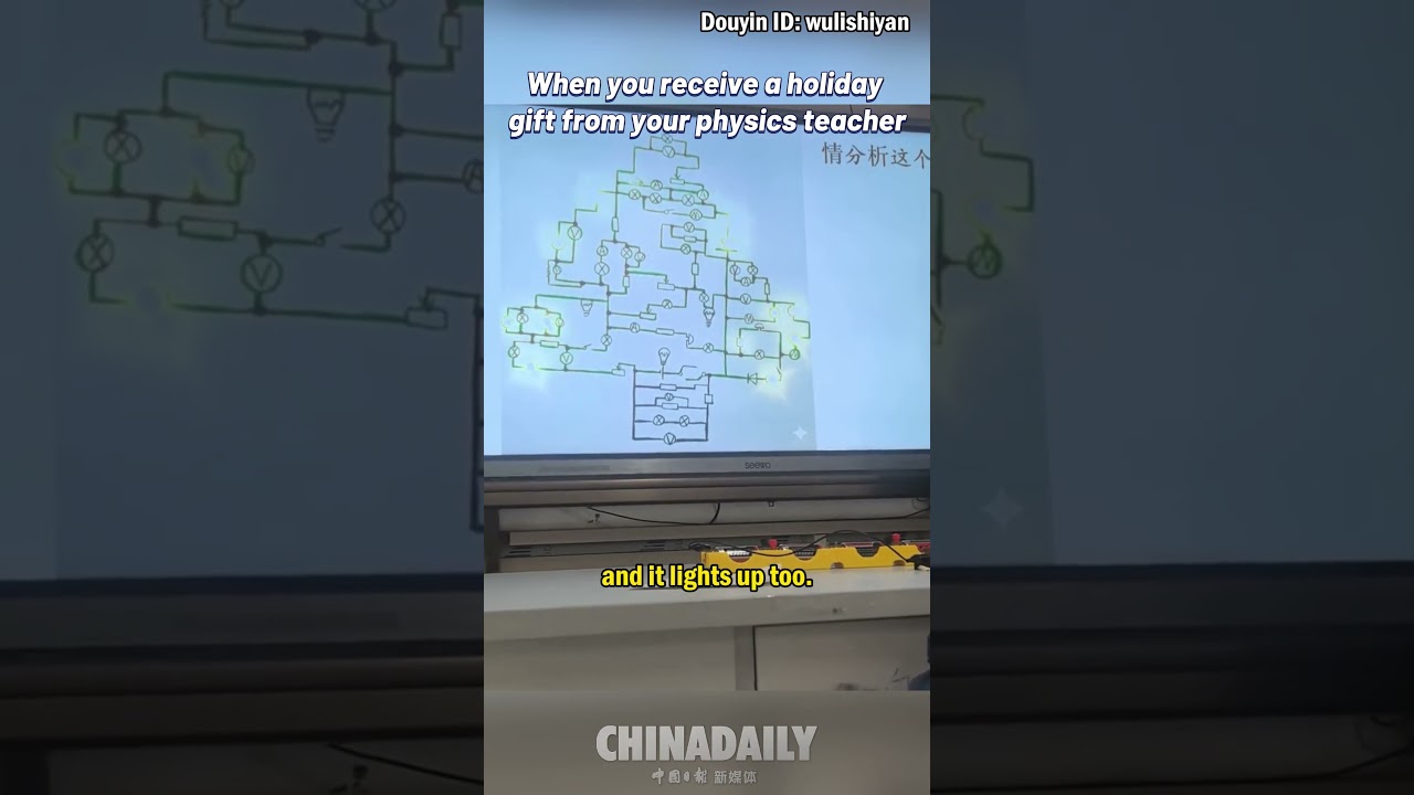 Who says physics can’t be festive? This teacher drew a Christmas tree using a circuit diagram. The lights turn on, and it even plays music, giving the students some unexpected #holiday cheer! 🎶🔌🎄 #FunChina #education
