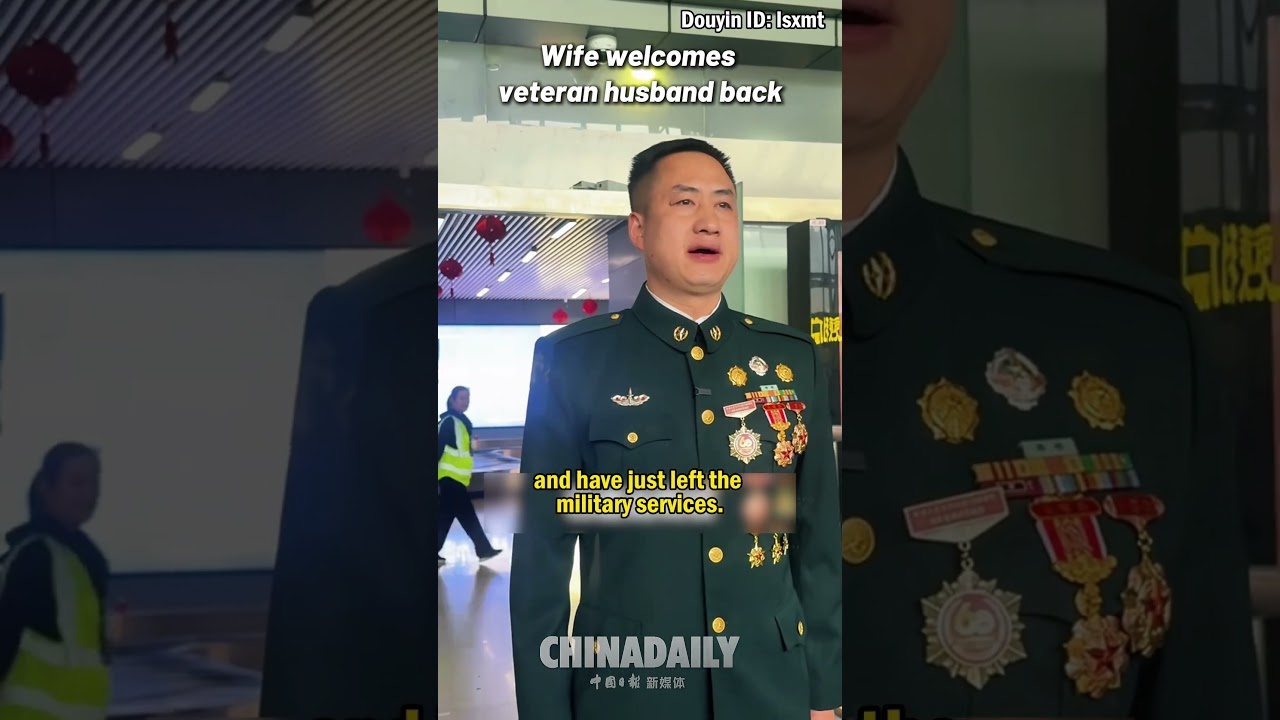 Wife welcomes veteran husband back #ChinaDaily #中国日报
