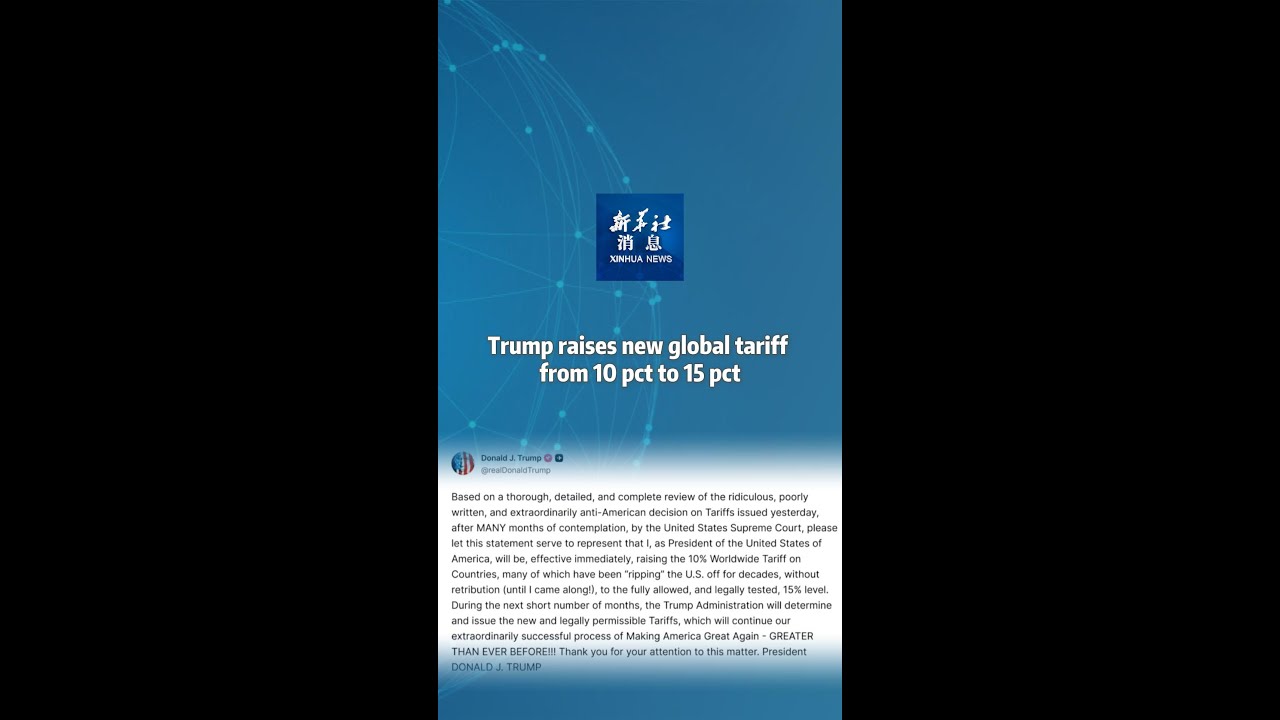 Xinhua News | Trump raises new global tariff from 10 pct to 15 pct #NEWCHINATV
