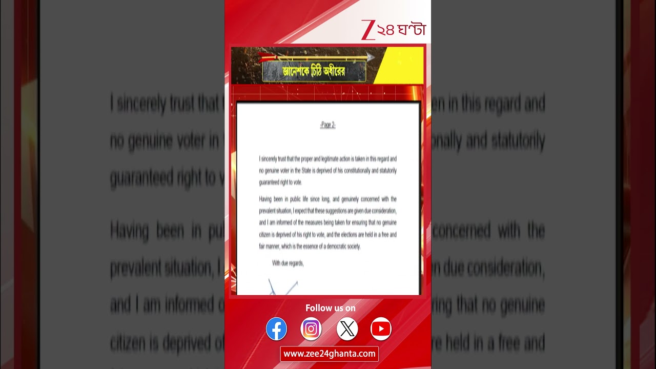 #Zee24Ghanta Adhir Ranjan Chowdhury | ‘SIR শেষ না করে ভোট ঘোষণা নয়,’ জ্ঞানেশকে চিঠি অধীর রঞ্জন চৌধুরীর 24 Ghanta