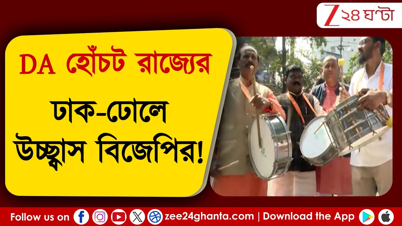 #Zee24Ghanta DA Verdict: আদালতের রায়ে বিধানসভার বাইরে ঢাক-ঢোল বাজিয়ে উচ্ছ্বাস বিজেপি বিধায়কদের